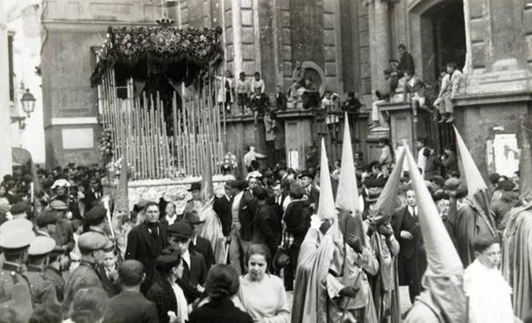 Paso de María Santísima del Refugio, en el momento de transitar por el entorno de la Puerta de la Carne