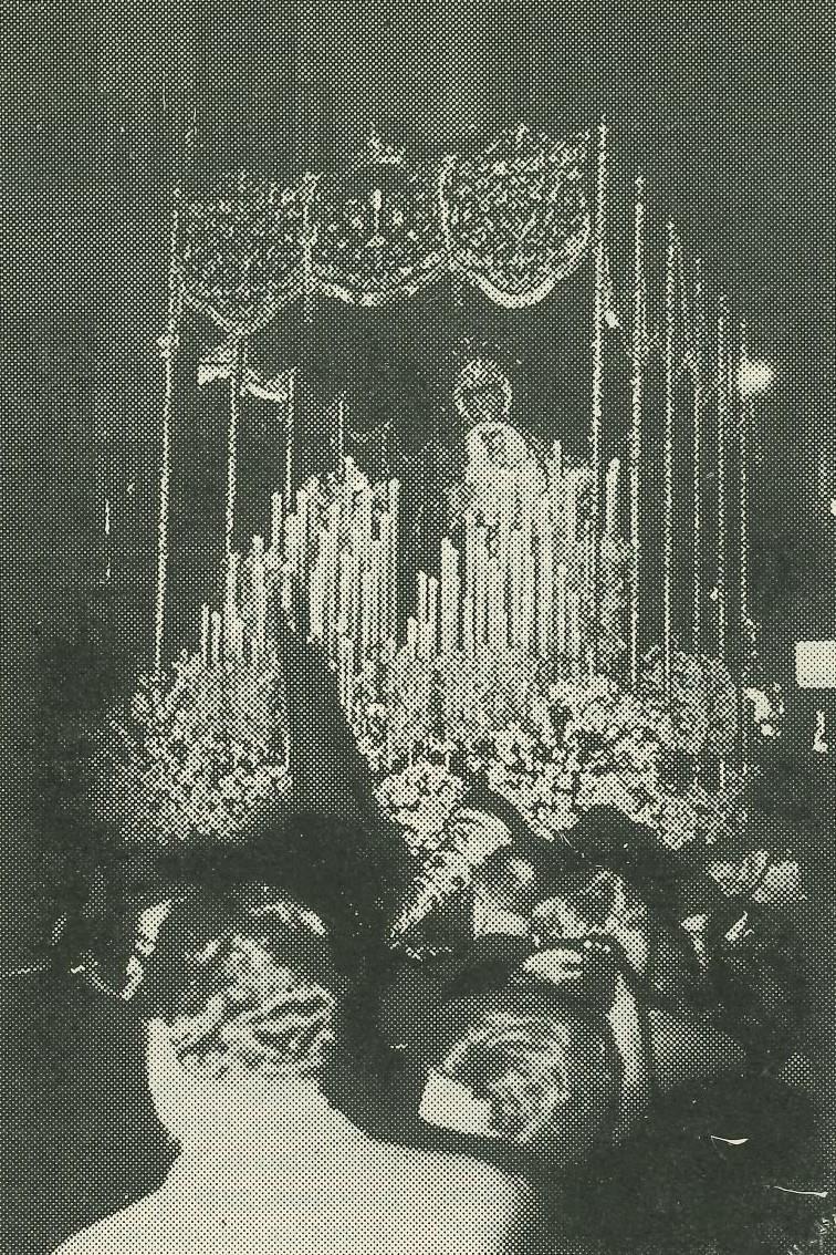 - Descripción: Fotografía del paso de María Santísima de Guadalupe correspondiente al 1969, primer año en que la Hdad. Aguas sacó paso de palio.