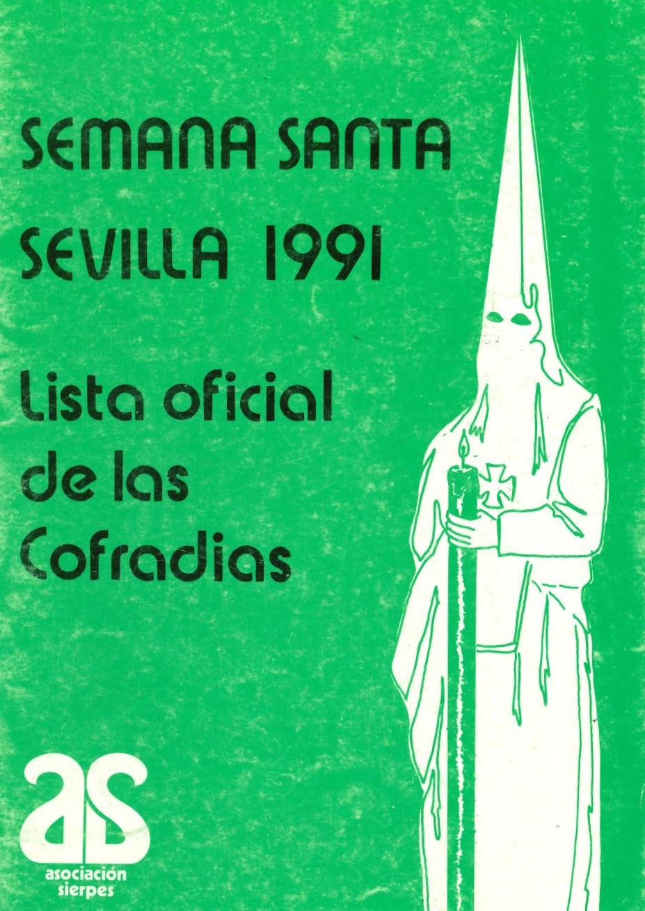 Programa de Mano, editado por Asociación Sierpes, en el que se da cuenta de la relación de hermandades que el año 1992 habrían de hacer estación de penitencia a la Santa Iglesia Catedral.