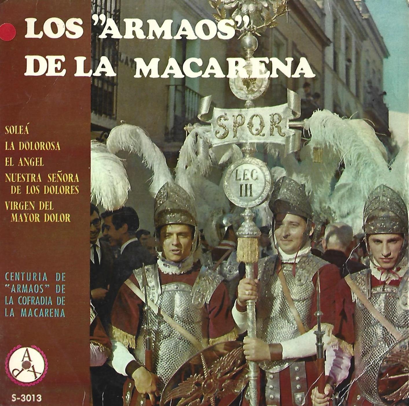 Los Armaos de la Macarena (1974) 1974 Centuria Macarena, Banda de Cornetas y Tambores Ver detalle Edita: P.A.X. Soporte: Disco SingleFormato: Original Fondos y ejemplares Francisco José Vázquez Perea 1 Descripción Disco de vinilo Single de marchas procesionales, editado por PAX e interpretado por la Centuria Macarena, que recoge las siguientes piezas: 'Soleá', 'La Dolorosa', 'El ángel', 'Nuestra Señora de los Dolores' y 'Virgen del M... Palabras clave 01 Audio 02 Semana Santa 03 Cornetas y Tambores Ver detalle