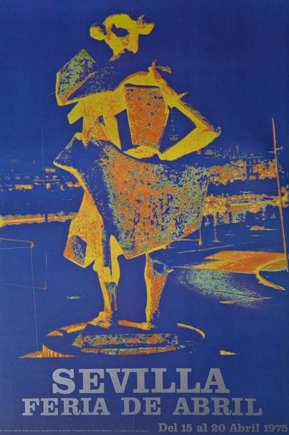 - Descripción: Cartel de Fiestas Primaverales correspondiente al año 1975, según fotografía de Manuel Baena, editado por el Ayuntamiento de Sevilla e impreso por Seix Barral.