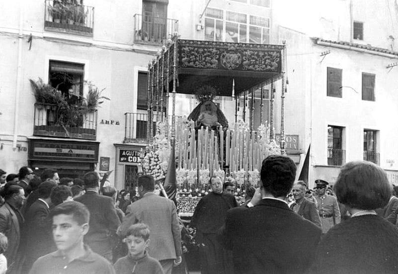 Paso de la Virgen de la Victoria, a su paso por el Barrio del Arenal