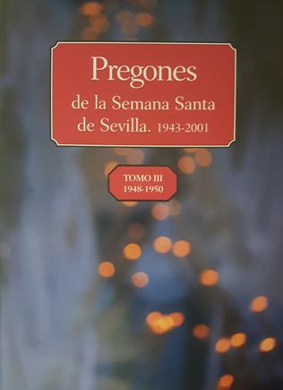 El Pregón de la Semana Santa de Sevilla - Tomo 3 (Autores Varios), AAVV 1992 (1ª Edición) Ver detalle Nº de páginas: 11501ª Edición: 1992 Edita: Guadalquivir Imprime: No figura impresorFormato: Original Fondos y ejemplares Francisco José Vázquez Perea 1 Rafael López-Campos Bodineau 1 Descripción Este tercer tomo recoge el texto de los pregones de la Semana Santa de Sevilla pronunciados entre 1976 y 1991, ambos inclusive. Palabras clave 04 Pregones, Exaltaciones, Meditaciones 05 Pregones Recopilación 07 Pregón Oficial Ver detalle