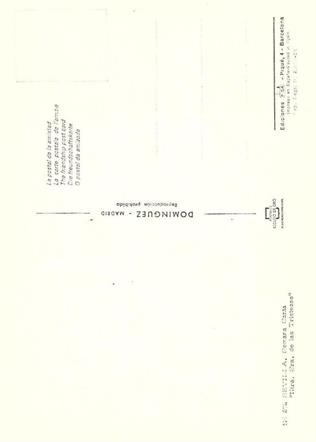 - Descripción: Postal de la serie 'Domínguez Color Serie A', editada por 'Fisa' (Barcelona), que muestra una imagen del paso de Nuestra Señora de la Presentación en el momento de salir de la Santa Iglesia Catedral por la Puerta de Palos. El reverso de la postal muestra la numeración y la leyenda 'SEVILLA. Semana Santa "Ntra. Sra. de las Tristezas". La postal no muestra año de edición, pero, por los elementos presentes en la imagen, se ha consignado 1965 como fecha aproximada de toma de la instantánea y por tanto de la edición.