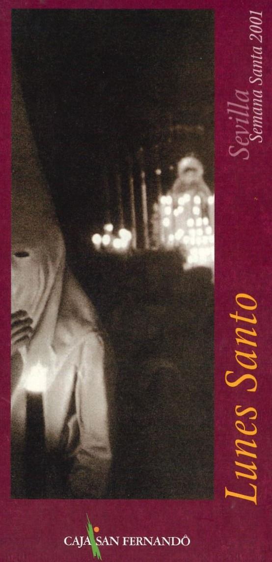 - Descripción: Programa de Mano correspondiente al Lunes Santo de 2001, editado por Caja San Fernando, en el que se da cuenta de las hermandades que ese año habrían de hacer estación de penitencia a la Santa Iglesia Catedral.