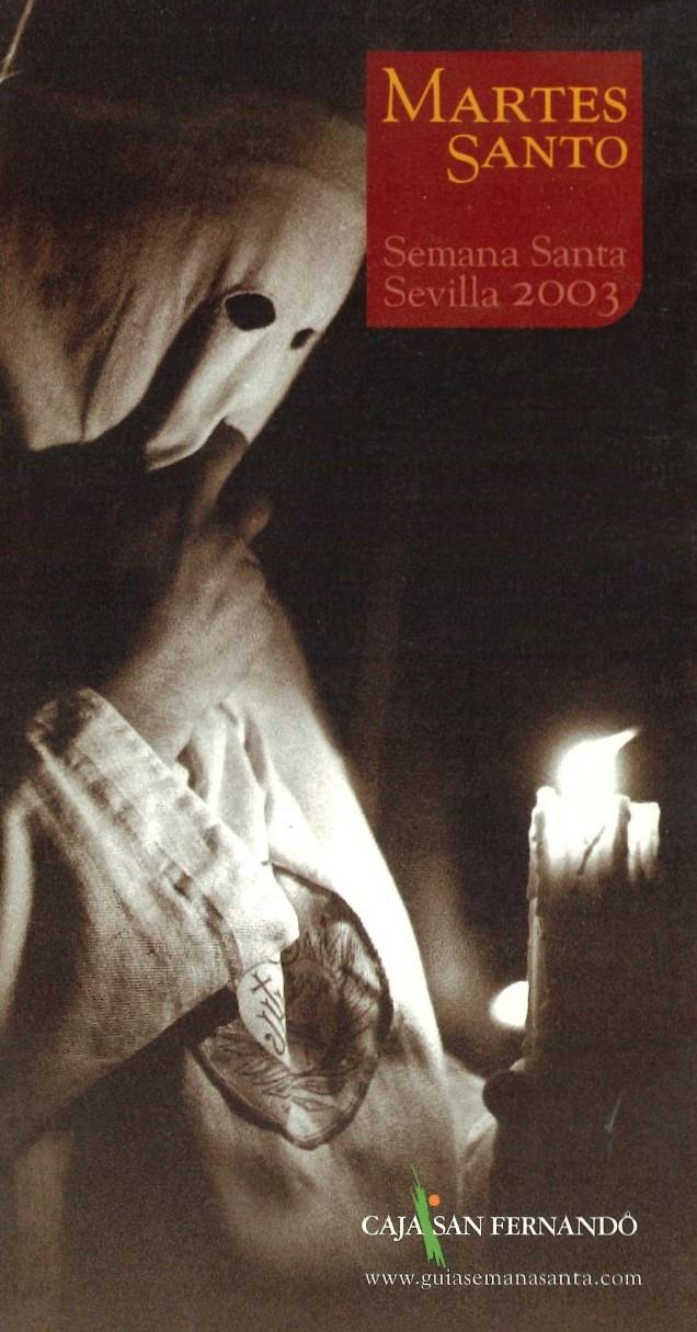 - Descripción: Programa de Mano correspondiente al Martes Santo de 2003, editado por Caja San Fernando, en el que se da cuenta de las hermandades que ese día habrían de hacer estación de penitencia a la Santa Iglesia Catedral.