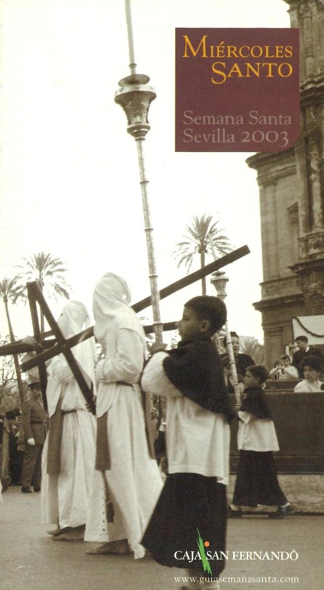 - Descripción: Programa de Mano correspondiente al Miércoles Santo de 2003, editado por Caja San Fernando, en el que se da cuenta de las hermandades que ese día habrían de hacer estación de penitencia a la Santa Iglesia Catedral.