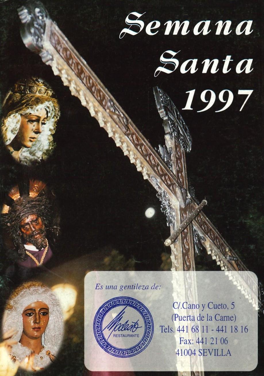 - Descripción: Programa de Mano, editado por Restaurante Modesto, en el que se da cuenta de las hermandades que en 1997 habrían de hacer estación de penitencia a la Santa Iglesia Catedral. El programa recoge un tabla por cada jornada de la Semana Santa, con indicación en el caso de cada hermandad de su denominación, templo del que sale, e itinerario completo que habría de seguir.