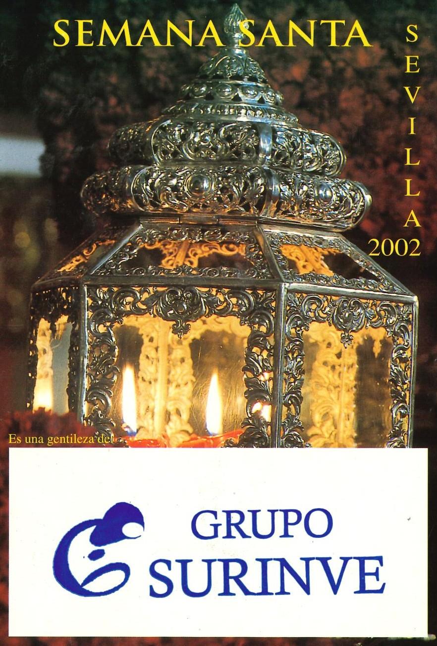 - Descripción: Programa de Mano, editado por Grupo Surinve, en el que se da cuenta de las hermandades que en 2002 habrían de hacer estación de penitencia a la Santa Iglesia Catedral. El programa recoge una relación de las hermandades según orden de día y salidas, con indicación, en forma de tabla, de la denominación de cada una de ella, templo del que sale, hora de salida y horario e itinerario detallado.